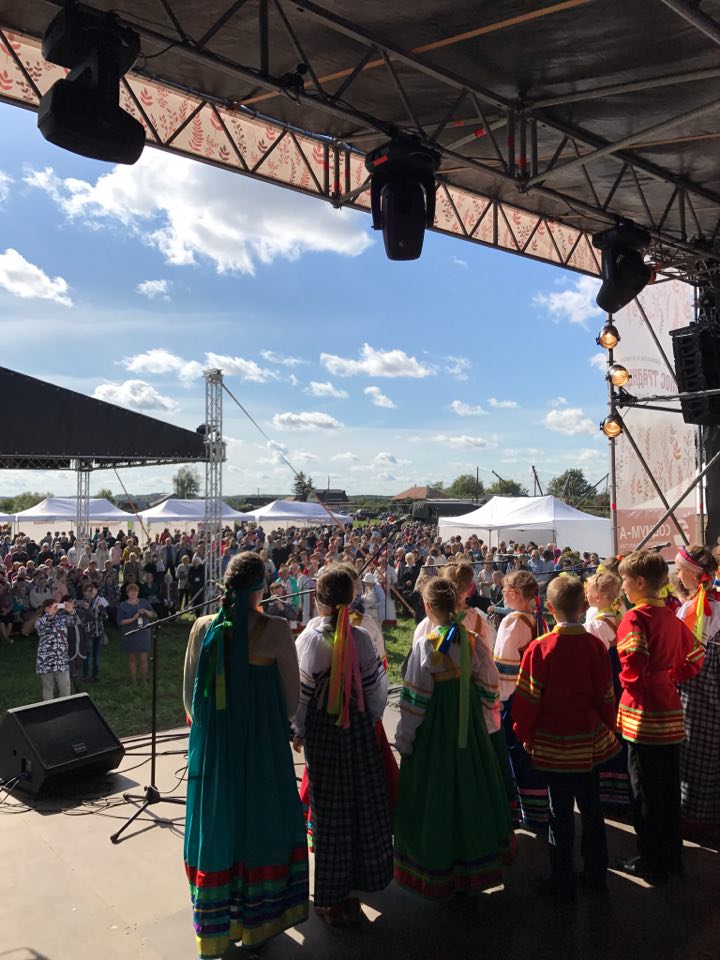 В Хирино проходит День села. Отличная погода! На праздник приехало очень много гостей. На сцене выступает детский ансамбль «Росинка».