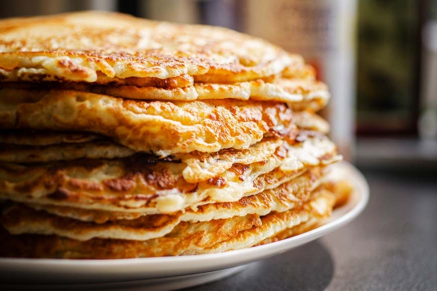 Для теста: просеянную муку всыпать в тёплое молоко. Дайте настояться при комнатной температуре 15 минут, чтобы разбухла клейковина. Добавьте яйца, сахар, ваниль и в последнюю очередь растительное масло. Хорошенько взбейте смесь, чтобы не было комочков. Выпекайте как обычно. Каждый готовый блин смазывайте сливочным маслом, чтобы они не слипались между собой.