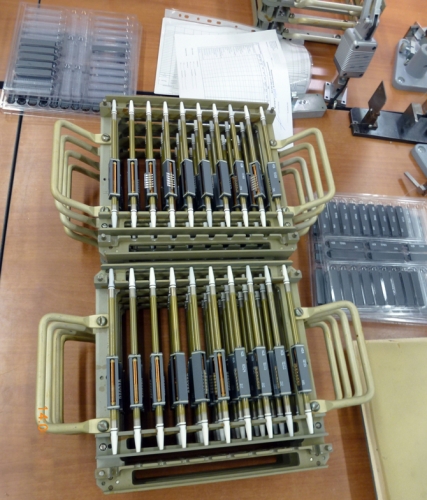 Например, блок 112Н состоит из сложных комплектующих: фазовращателя и переключателя поляризации, собранных на общем корпусе, по форме и размеру напоминающем крупный карандаш. Корпус, в свою очередь, собирается из нескольких частей: ферритовых стержней, ситалловых цилиндрических конусов-наконечников и «таблеток», изготовленных из разных марок ситалла и феррита. Все комплектующие элементы для блоков, за исключением ферритов, которые закупаются в «КБ-1», производятся на «ФазАРе».