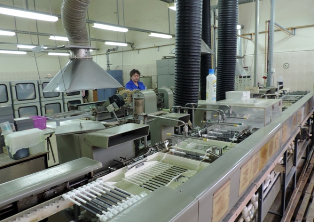 Каждый высокочастотный блок в процессе изготовления проходит 64 операции, большинство из которых требуют кропотливой и точной ручной работы. При взгляде со стороны участки завода немного напоминают ювелирные мастерские.