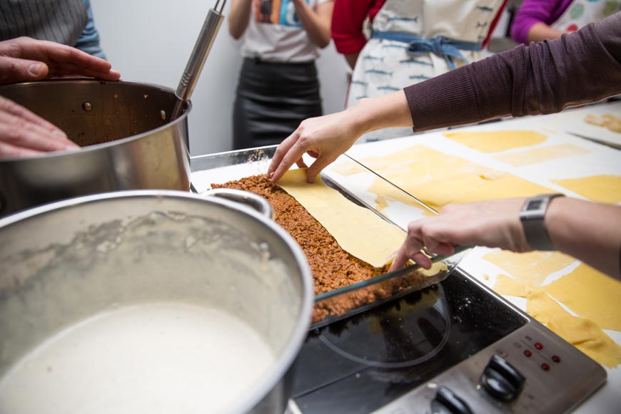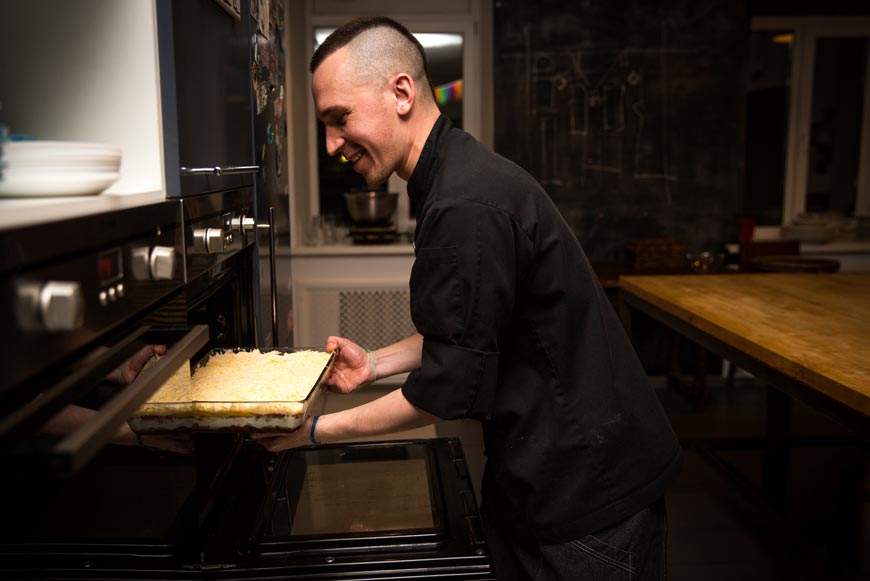 Среди его помощниц и учениц в этот раз оказались и сотрудницы «Социума» – Елена Савицкая и Ксения Попова. Вместе они учились готовить настоящую итальянскую лазанью.